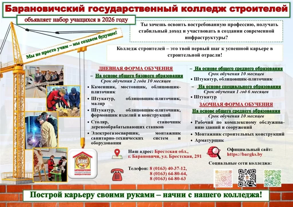 УЧРЕЖДЕНИЕ ОБРАЗОВАНИЯ "БАРАНОВИЧСКИЙ ГОСУДАРСТВЕННЫЙ КОЛЛЕДЖ СТРОИТЕЛЕЙ"