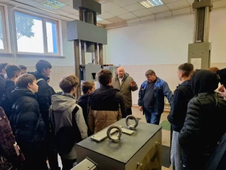 Во время экскурсии группа также побывала на складе готовой продукции и в лабораториях, где специалисты проводят испытания строительных материалов и изделий на прочность и качество. Это позволило учащимся на практике увидеть, как теоретические знания, полученные на учебных занятиях в колледже, применяются в реальных производственных условиях.
