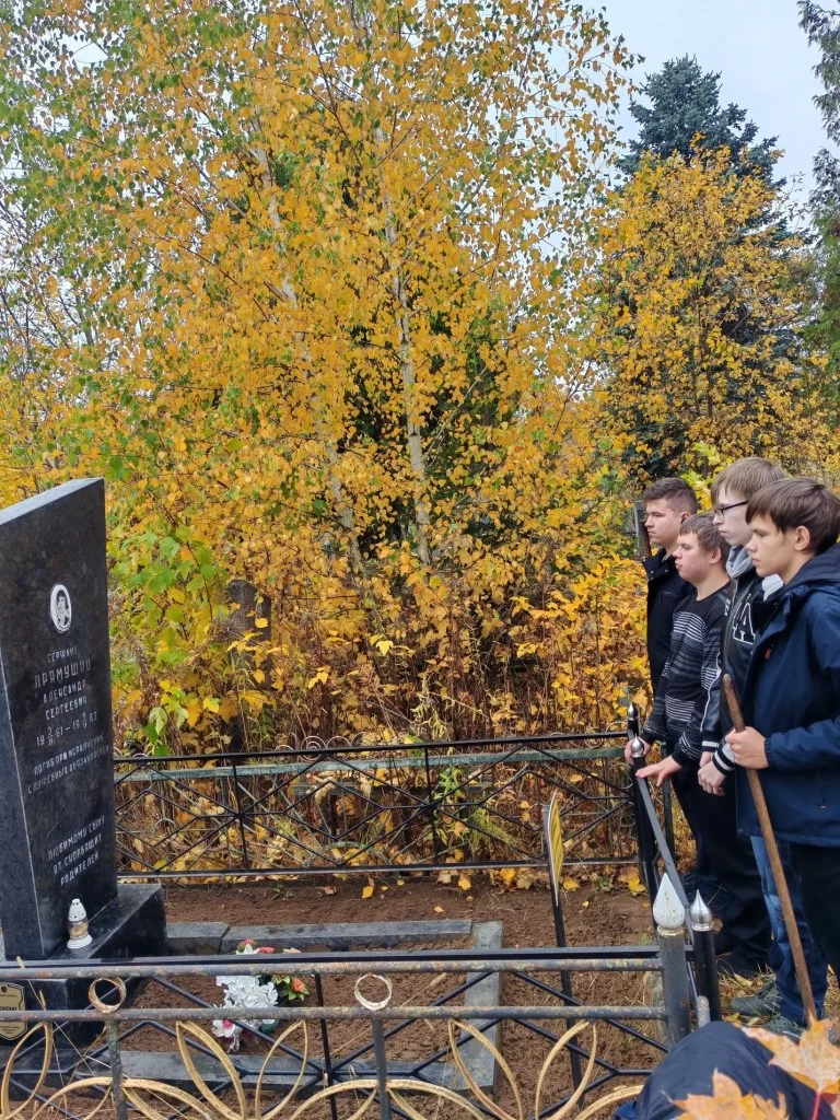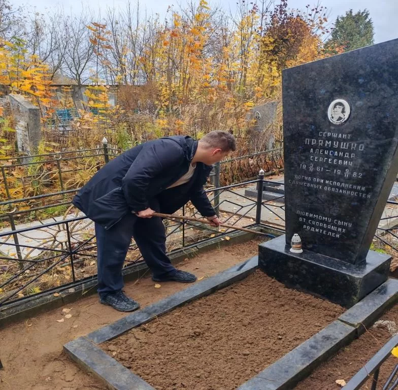 24.10.2025 года учащиеся колледжа военно-патриотического клуба «Время патриотов» совместно с руководителем по военно-патриотическому воспитанию Камлёнок Оксаной Анатольевной приняли участие по наведению порядка на месте захоронения А.С. Прямушко - выпускника нашего колледжа, участника афганской войны, погибшего героически, спасая своих боевых товарищей из огня.