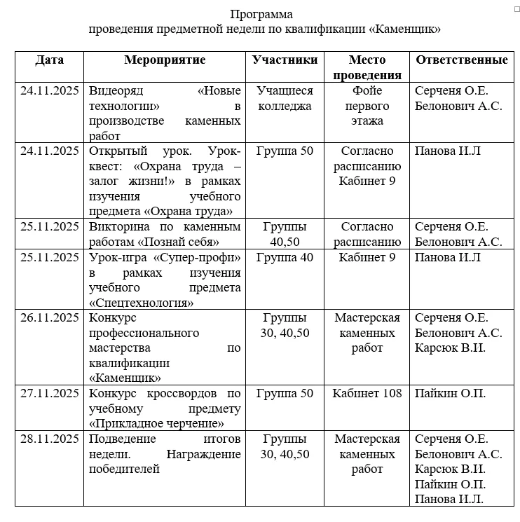 С 13.10.2025 г. по 17.10.2025 г. в колледже строителей состоялась предметная неделя по профессии