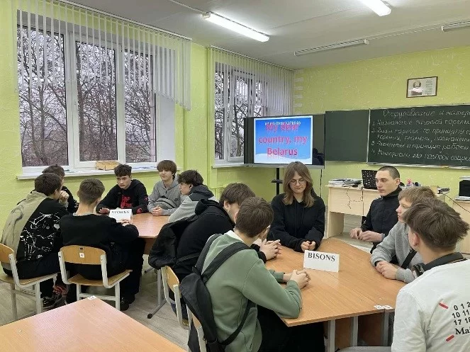 Ярким и запоминающимся стало внеклассное мероприятие по английскому языку «My dear country, my Belarus», которое прошло в среду с учащимися группы №41. Мероприятие прошло в форме викторины, в ходе которой две команды отвечали на различные вопросы про Беларусь.