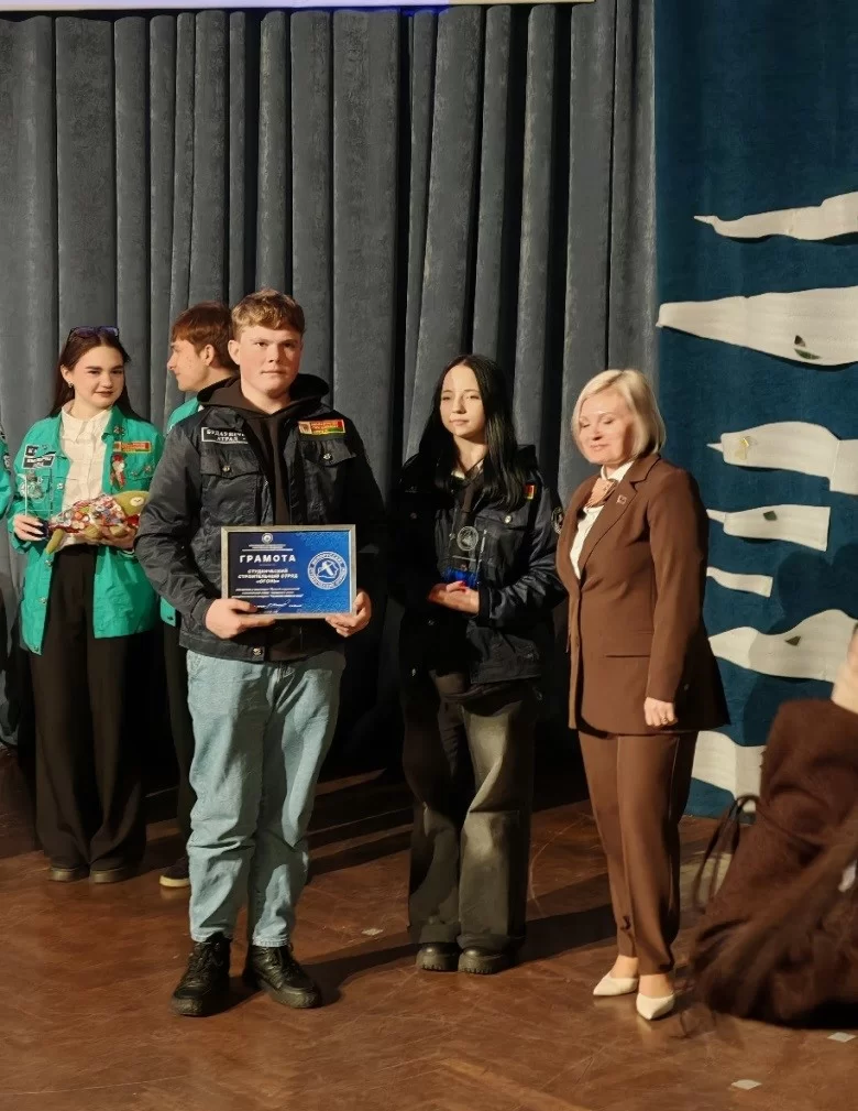 С приветственным словом выступила начальник отдела идеологической работы и по делам молодежи Барановичского горисполкома Оксана Щерба, которая наградила грамотами Барановичского городского комитета Общественного объединения «Белорусский республиканский союз молодежи» победителей городского этапа республиканского конкурса в номинации «Лучший штаб трудовых дел 2025» и «Лучший студенческий отряд 2025», а также объявила благодарственные письма.