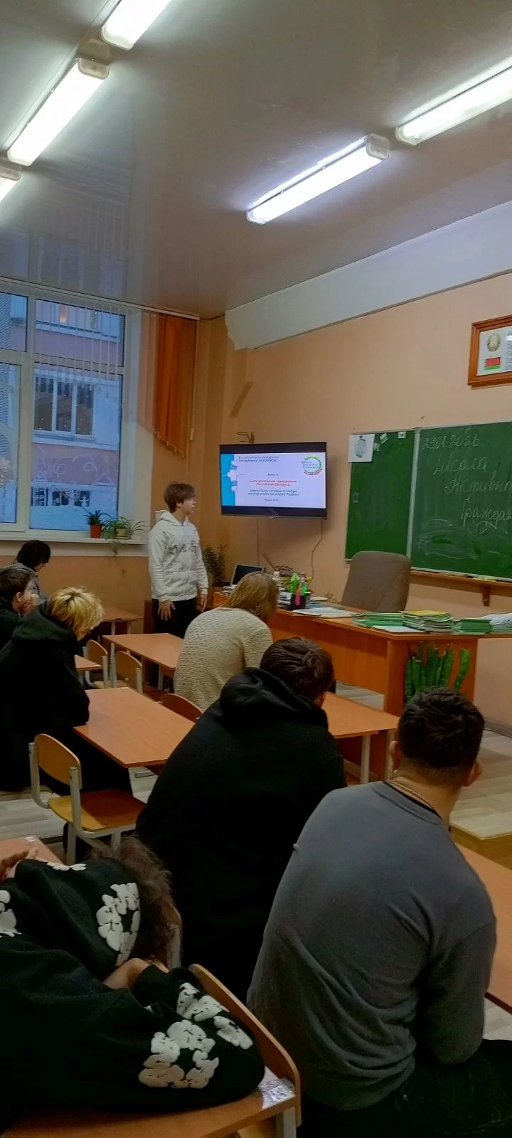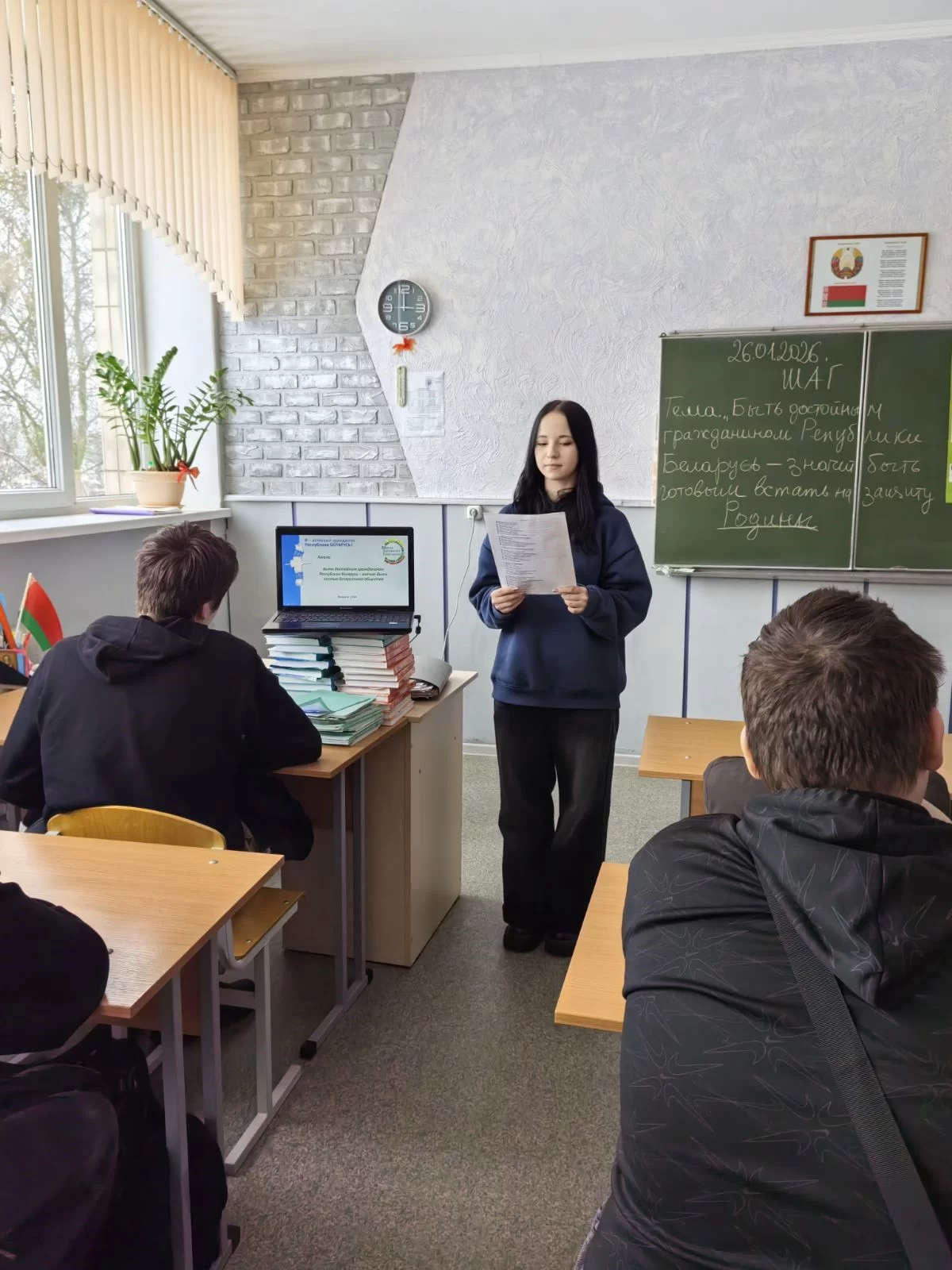 29 января 2026 года в учебных группах колледжа в рамках информационно-образовательного проекта «ШАГ» - «Школа Активного Гражданина» был проведен информационный час на тему «Быть достойным гражданином Республики Беларусь – значит быть готовым в любую минуту встать на защиту Родины».