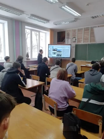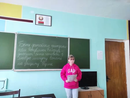 Кураторы групп проинформировали учащихся о том, Республика Беларусь – независимое суверенное государство, внешняя политика которого направлена на сохранение мира, предотвращение или мирное разрешение вооруженных конфликтов. 25 апреля 2024 года на VII Всебелорусском народном собрании утверждены Военная доктрина Республики Беларусь и Концепция национальной безопасности Республики Беларусь – основополагающие документы, регламентирующие подходы белорусского государства к обеспечению безопасности. В Военной доктрине подтверждается готовность Республики Беларусь выступать площадкой для мирного урегулирования конфликтов и запуска глобального диалога по безопасности.