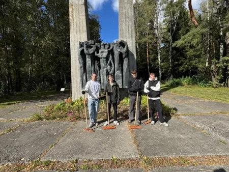 24 сентября учащиеся группы 34 Дворецкий Глеб, Жмырко Александр, Середа Сергей, Нестерович Илья, Ковш Даниил приняли участие в благоустройстве объекта историко-культурного наследия мемориального комплекса «Урочище Гай». Ребята пропололи тротуары, убрали сорную растительность и листву, сгребли траву, расчистили дорожки и вывезли мусор.