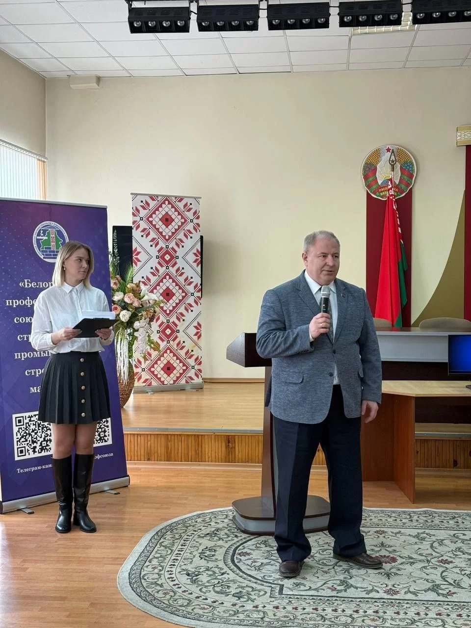 Мероприятие завершилось диалоговой площадкой учащихся колледжей строительной отрасли нашей страны с лидером Профсоюза Дмитрием Просвиряковым, а также с главным правовым инспектором труда Белорусского профсоюза работников строительства и промышленности строительных материалов Бейлин Виталием Юрьевичем.