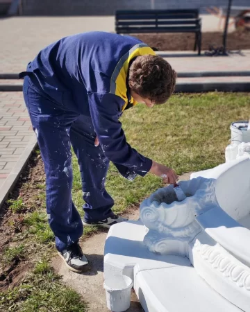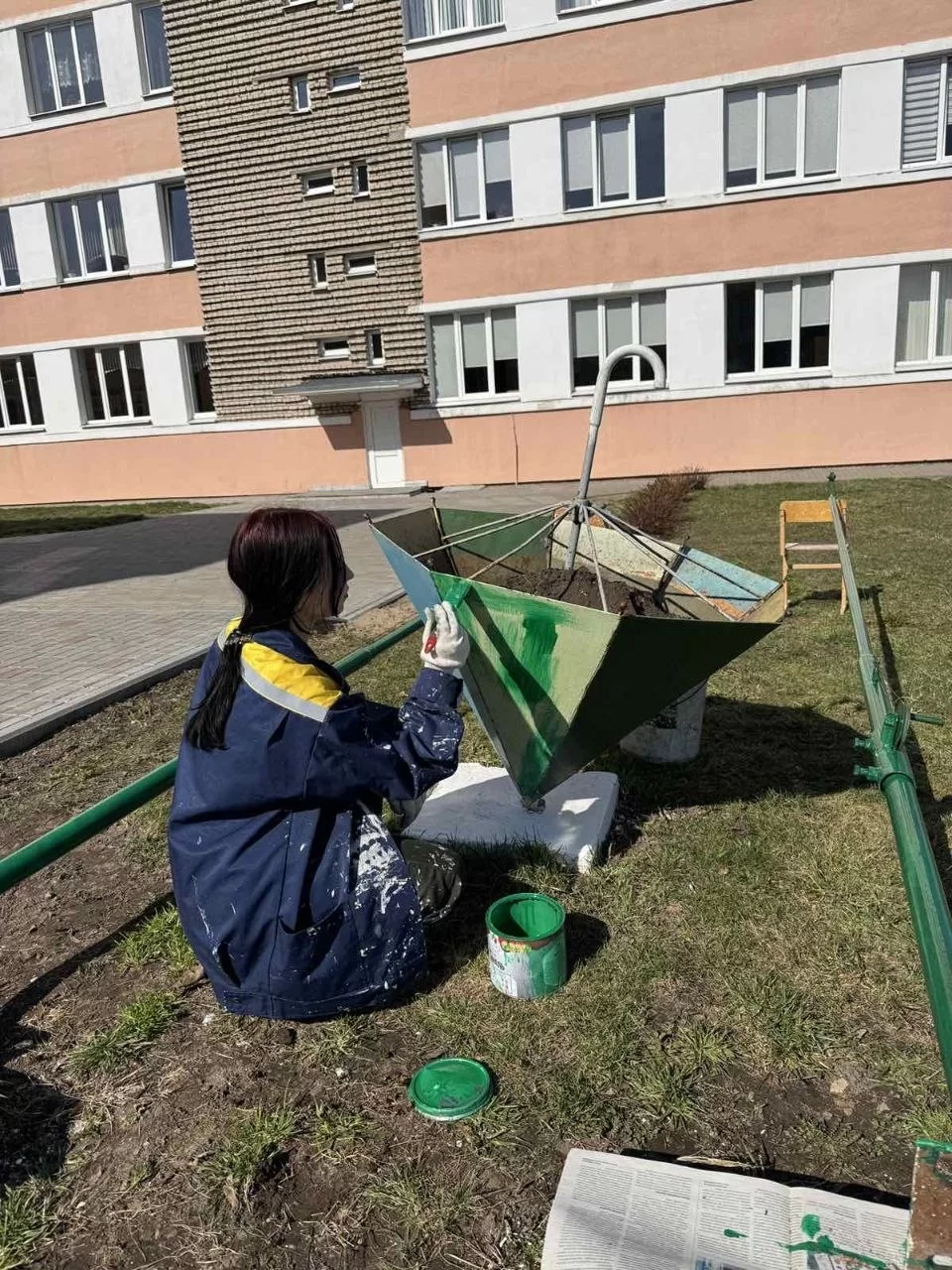 С самого утра во дворе колледжа кипела работа: учащиеся и педагоги убирали мусор, приводили в порядок газоны, красили бордюры и скамейки. Каждый внес свой вклад в общее дело, ведь чистота и уют – это результат совместных усилий.
