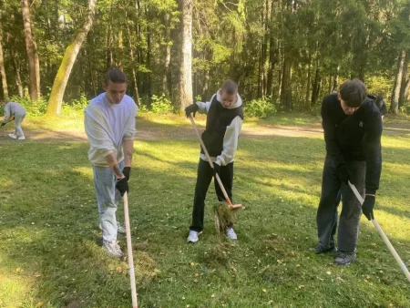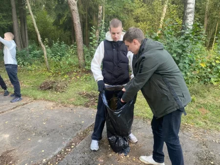 24 сентября учащиеся группы 34 Дворецкий Глеб, Жмырко Александр, Середа Сергей, Нестерович Илья, Ковш Даниил приняли участие в благоустройстве объекта историко-культурного наследия мемориального комплекса «Урочище Гай». Ребята пропололи тротуары, убрали сорную растительность и листву, сгребли траву, расчистили дорожки и вывезли мусор.